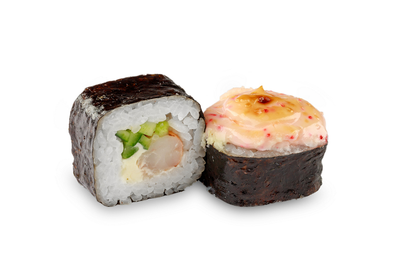 Сыр филадельфия, креветки, огурец, соус масаго