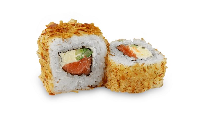 Сыр филадельфия, лосось, огурец, стружка тунца