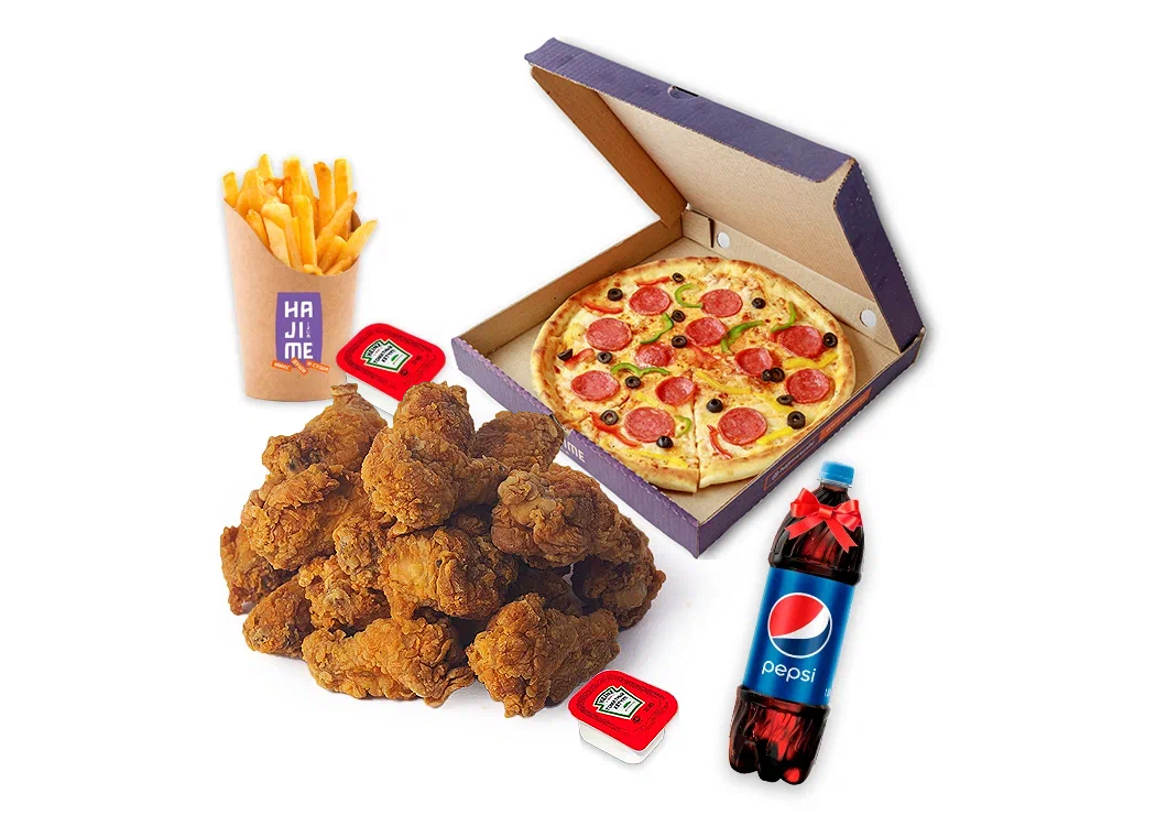 Крылышки 20 шт, Пепперони 30 см, Пепси 1 лт, Фри, Кетчуп