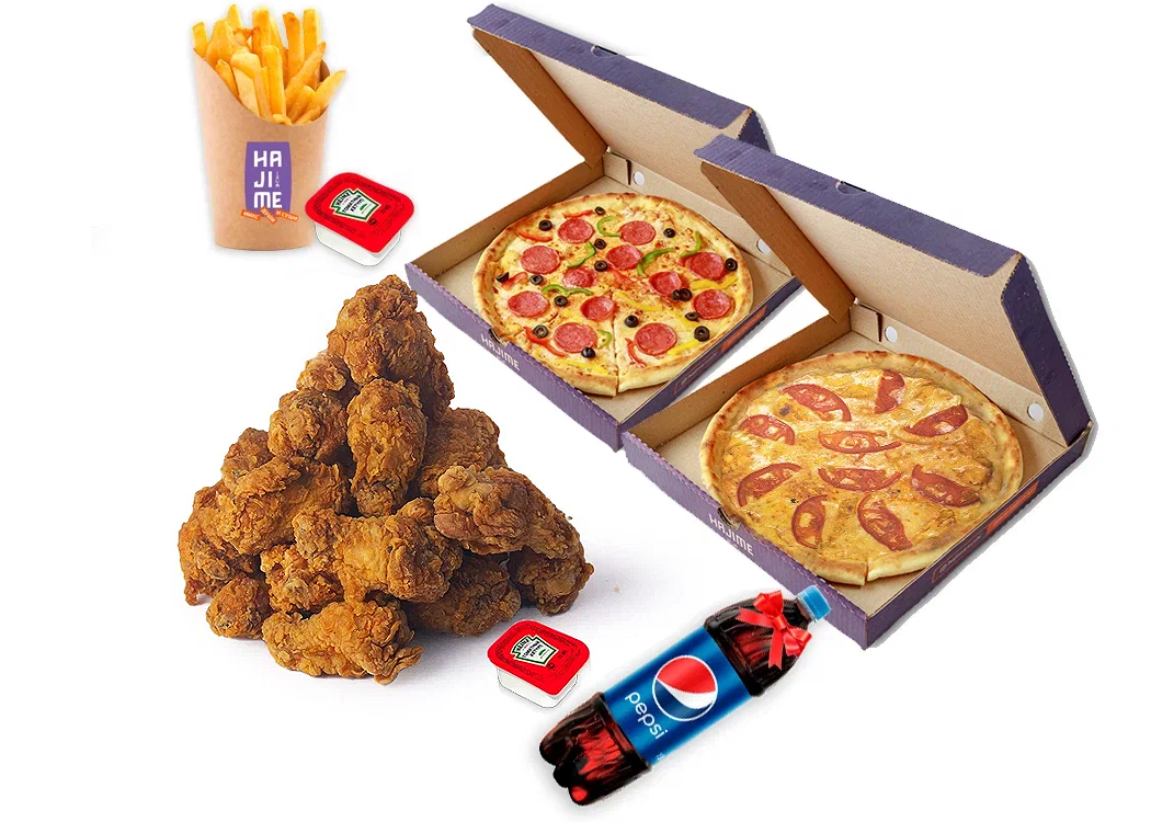 Крылышки 30 шт, Пепперони 30 см,Маргарита 30 см, Пепси 1 лт, Фри, Кетчуп