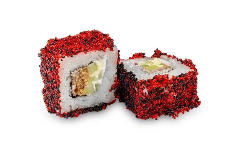 Сыр филадельфия, лосось обжаренный, икра тобико, огурец