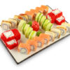 Лосось жаренный, цыпленок копченный, огурцы, майонез, икра